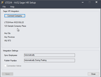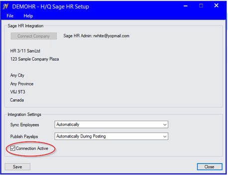 - From the Sage HR screen, deselect the Connection Active box.